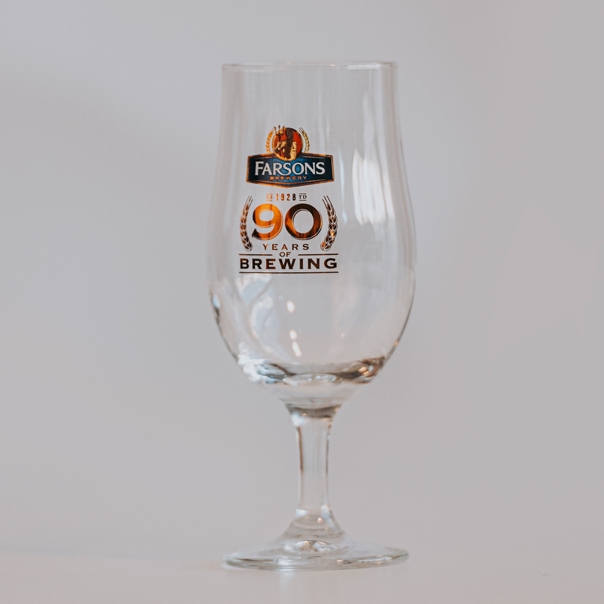 This elegant stemmed glass with a curved bowl and narrow opening enhances aroma and flavour. Featuring the 90 Years of Brewing logo, it’s a perfect keepsake for beer enthusiasts.